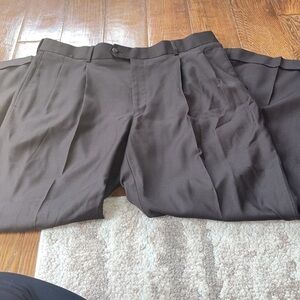 EUC dark brown dress pants have no damage, stains, or odor. Smoke free home. Pleated and rolls cuffs. Dry cleaned before shipping.