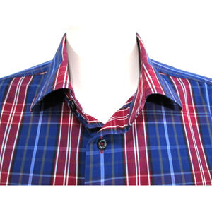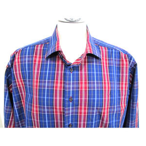 EUC! David Donahue Blue & Red Plaid Long Sleeve Button Up Dress Shirt Men Sz 2XL