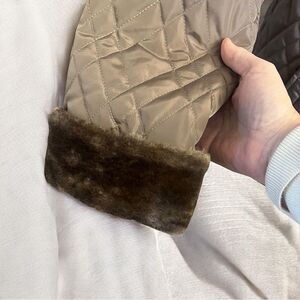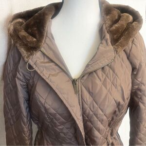 EUC Dennis Basso Cinch Waist Quilted Anorak Coat with Faux Fur Trim Size Small