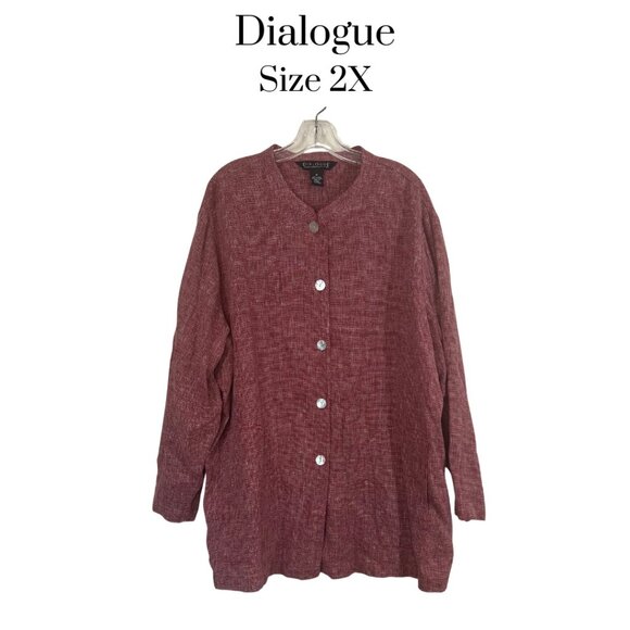 EUC Dialogue Linen Blend Button Down Tunic Red White Size 2X Women's Top