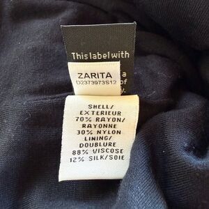 Shell: 70% Rayon, 30% Nylon; Lining: 88% Viscose, 12% Silk