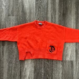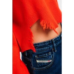 EUC Diesel Red Cropped Wool Cashmere Sweater Distressed Hem Logo Pocket Sz Small