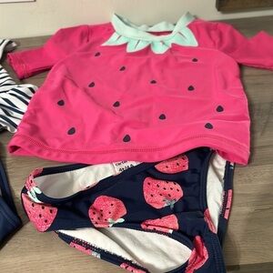 EUC! Disney 4T Minnie Mouse Rashguard Swim Set AND CARTER'S STRAWBERRY Rashguard