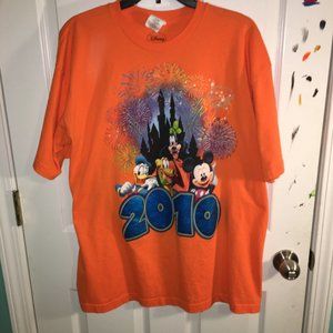 EUC Disney T Shirt Orange Mickey Donald Duck Men's Size XL 2010 Disney Parks