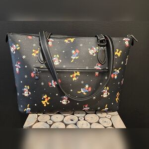 Coach tote in excellent condition with Disney Christmas print, non smoking home, 16" wide x 10.5 " tall, 5" deep, 10" handle drop, free shipping!