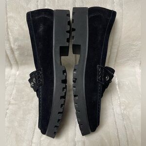 Donald J. Pliner Suede Lug Sole Regina Loafers Black Suede EUC Size 8