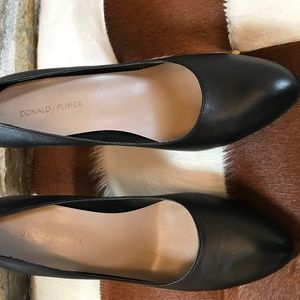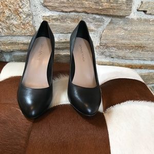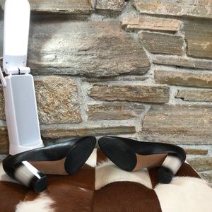 Worn only a few times. These are classic pumps with a twist given the unique heel.They fit TTS and are very comfortable. The heel is about 4 inches.