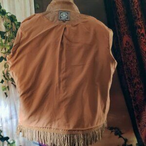 EUC: Double D Ranch Sze Medium Tan Leather Studded Fringe Western Jacket