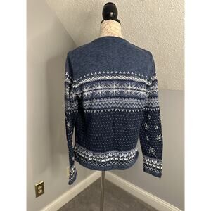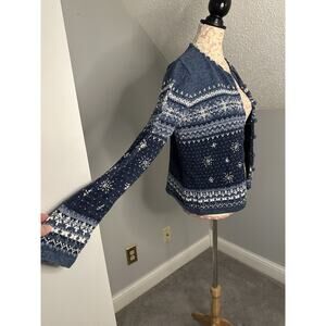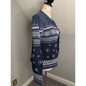 EUC Dressbarn Faire-Isle Style Winter Embellished Snowflake Cardigan Sz Med