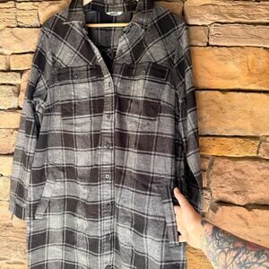 EUC Duluth 2X Women’s Folklore Flannel Long Duster Button Up Black/Gray Dress