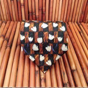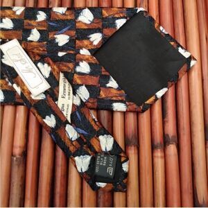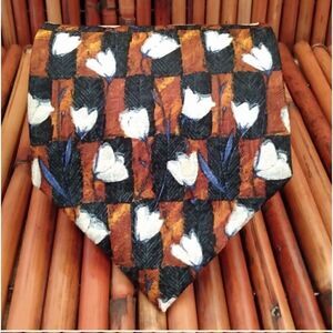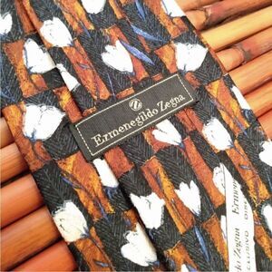 EUC ERMENEGILDO ZEGNA Black & Brown Rectangles with White Flowers 100% Silk Tie