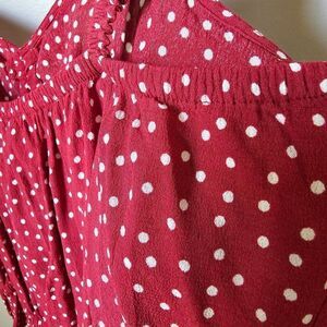 EUC EXPRESS POLKA DOT RED/WHITE FLUTTER STRAPS CINCHED SWEETHEART NECK TANK M