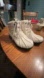 Very stylish off-white lace-up / side-zip winter ankle booties. Perfect for slushy snow, your feet will definitely stay dry! I LOVE these, they are just a tad too small. I’m normally 7.5-8, and when I tried these on in Macy’s “last chance” section, I was shocked how well they fit…until they didn’t. I’m listing these as a 7 (the size listed on the tag is 6.5WW) because that’s exactly how they fit, I’m guessing because the WW makes it roomier. They aren’t super wide. There is a small scuff near the toe area, but you can barely notice it because of the stitching (see pic). I’m telling you, these are great, comfortable booties that go with absolutely everything! Will ship in one (1) business day!