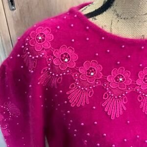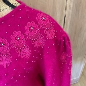 EUC Eddie Dassin angora wool sweater vintage embellished beaded hot pink