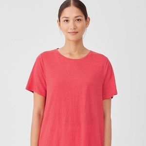 EUC Eileen Fisher Organic Linen Short Boat Neck Tee Watermelon Size Medium