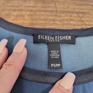 EUC Eillen Fisher Shirt Women's sz Petite Small Blue Ombre Sheer Silk Blouse