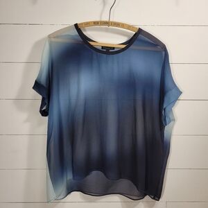 EUC Eileen Fisher Blue Ombre Sheer Silk Blouse Women's sz PS