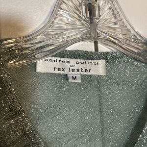 EUC Elegant Andrea Polizzi Silver Shimmering Long Sleeve Button Down Top Size M