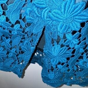 EUC Elie Tahari Floral Crochet Knit Teal Sheath Dress Size 8 US