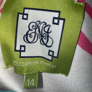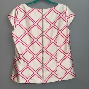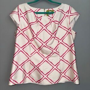 EUC Elizabeth McKay Silk Blend Geometric Flare Cap Sleeve Blouse Top Size 14