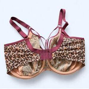 Elomi sachi plunge bra in leopard print with maroon trim and strappy chest detail! Worn a hand full of times. 38HH UK sizing.
