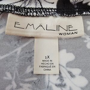EUC Emaline Black and White Floral Vneck Tunic Top Size 1X