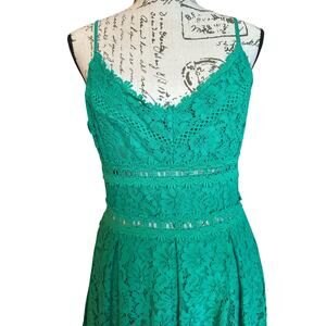 EUC Emerald Green Lace Midi Dress Size M WeddingGuest BarbieCore GardenParty