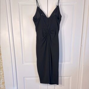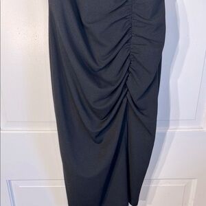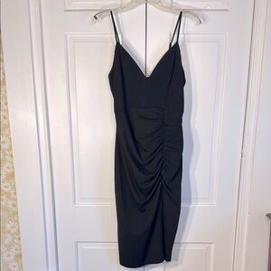 EUC Emerald Sundae Black Ruched Midi Cocktail Dress
