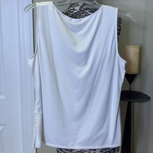 Excellent used condition. No rips, tears or stains. X-Large. White. Lace front. V neck. Sleeveless. See pic for materials.
