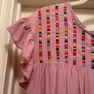 EUC Entro embroidered mauve tiered ruffle sleeves mini dress in a size medium.