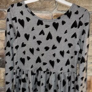 (EUC) Epic Threads Girls Kids Med (10/12) Heart Patterned Gray/Black Dress Long Sleeve