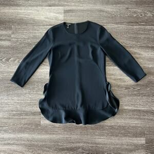 EUC Escada Black Tunic Top Ruffle Hem Minimalist Luxury Blouse Sz 36 US 6 / S-M
