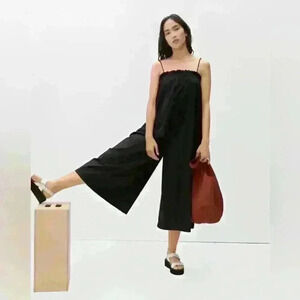 EUC Everlane The Flowy Jumpsuit Overall Palazzo Wide Leg Oversized Black Pockets