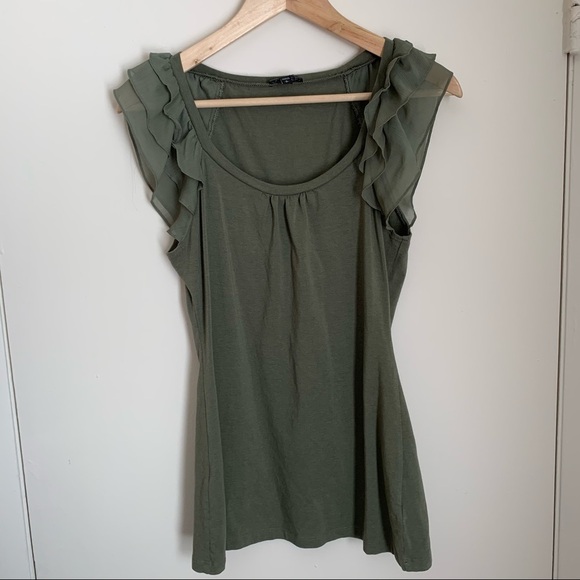 EUC Express Flutter Sleeve Top- sage green, like new.