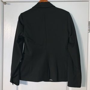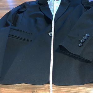 Single button closure. 2 real front pockets, 2 faux. Padding in the shoulders. Spandex for that comfortable stretch. Comes with garment bag.