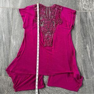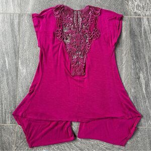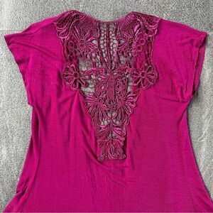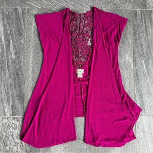 EUC Eyelash Couture Short Cap Sleeve Open Cardigan Pockets Lace Back Cut Out S