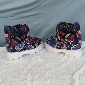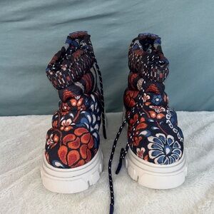EUC FARM RIO Lug Sole Puffer Booties Pineapple Flower Women Quilted 6.5 Orange