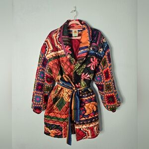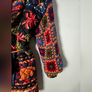 EUC FARM RIO Patchwork Tapestry Crochet Multi Patterned Puffer Coat, Size Large