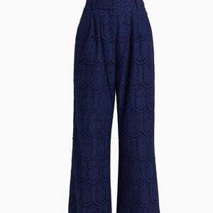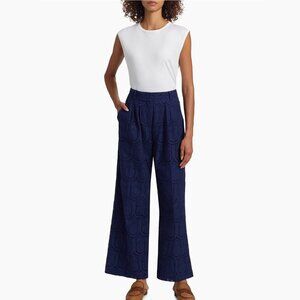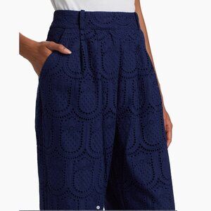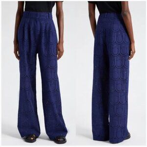 EUC FARM Rio Pineapple Eyelet High Waist Wide Leg Pants Navy Blue Women's Medium
