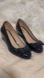 Chic black flats with a glossy finish. Features a stylish bow detail. Perfect for versatile wear.