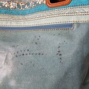EUC FOSSIL KEY PER COATED CANVAS LIGHT BLUE TOTE / SHOULDER BAG LARGE