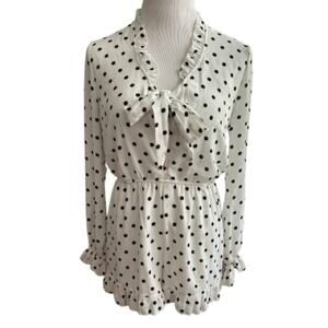 EUC FREE GENERATION Black and White Polka Dot Long Sleeve Ruffle Romper. Size M.