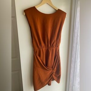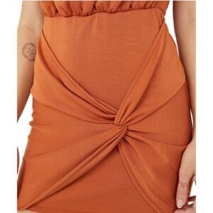 EUC FREE PEOPLE RUNAWAY KNIT MINI DRESS Burnt Orange Ruched Size XS or Small