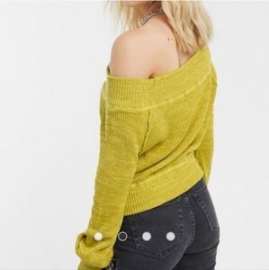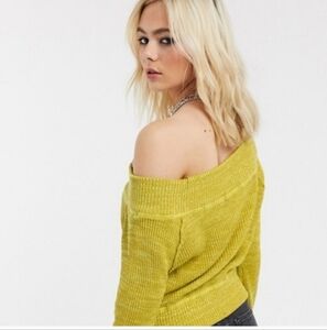 style tags: off the shoulder, sweater, yellow, chartreuse, Free People
