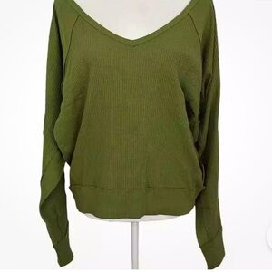 EUC! FREE PEOPLE Santa Clara Long Sleeve Thermal Knit Top Ferngully Green