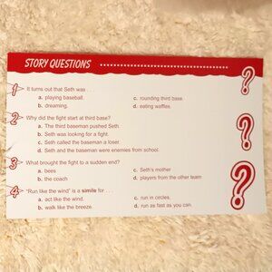 Everything in this Fiction Reading Comprehension Cards for 3rd Grade is in EXCELLENT, like new, condition with all cards included. The storage box shows a tiny bit of wear from normal storage, but overall this teacher resource appears to be in new condition.