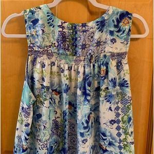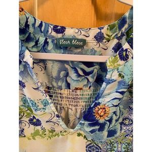 EUC, Fleur Bleve Women's Sleeveless Blouse Sz Large Floral Print, V-neck Multi