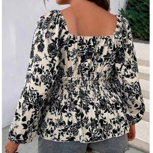 EUC Floral Print Elastic Waist Peplum Blouse Size XXL