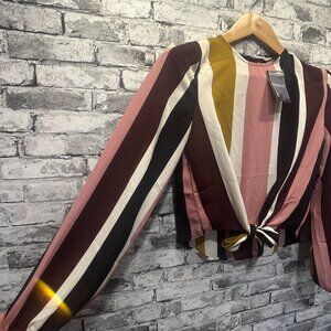 EUC Forever 21 Pink, Yellow, Black Blouse Cropped Size Small