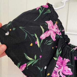 Women’s Forever 21 dress. Dress is off shoulder style, colored black with floral print. Has wrap around belt. Size medium. Smoke free home!